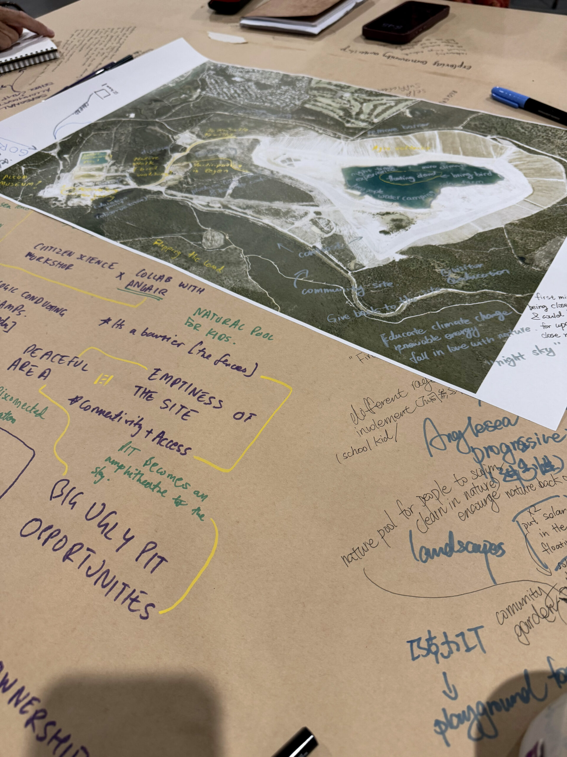 在了解 Anglesea 背景后,我们走进社区,与 40 多位当地居民、艺术家及政府代表开展工作坊,共同梳理旧矿区的未来愿景,并形成第一版设计。