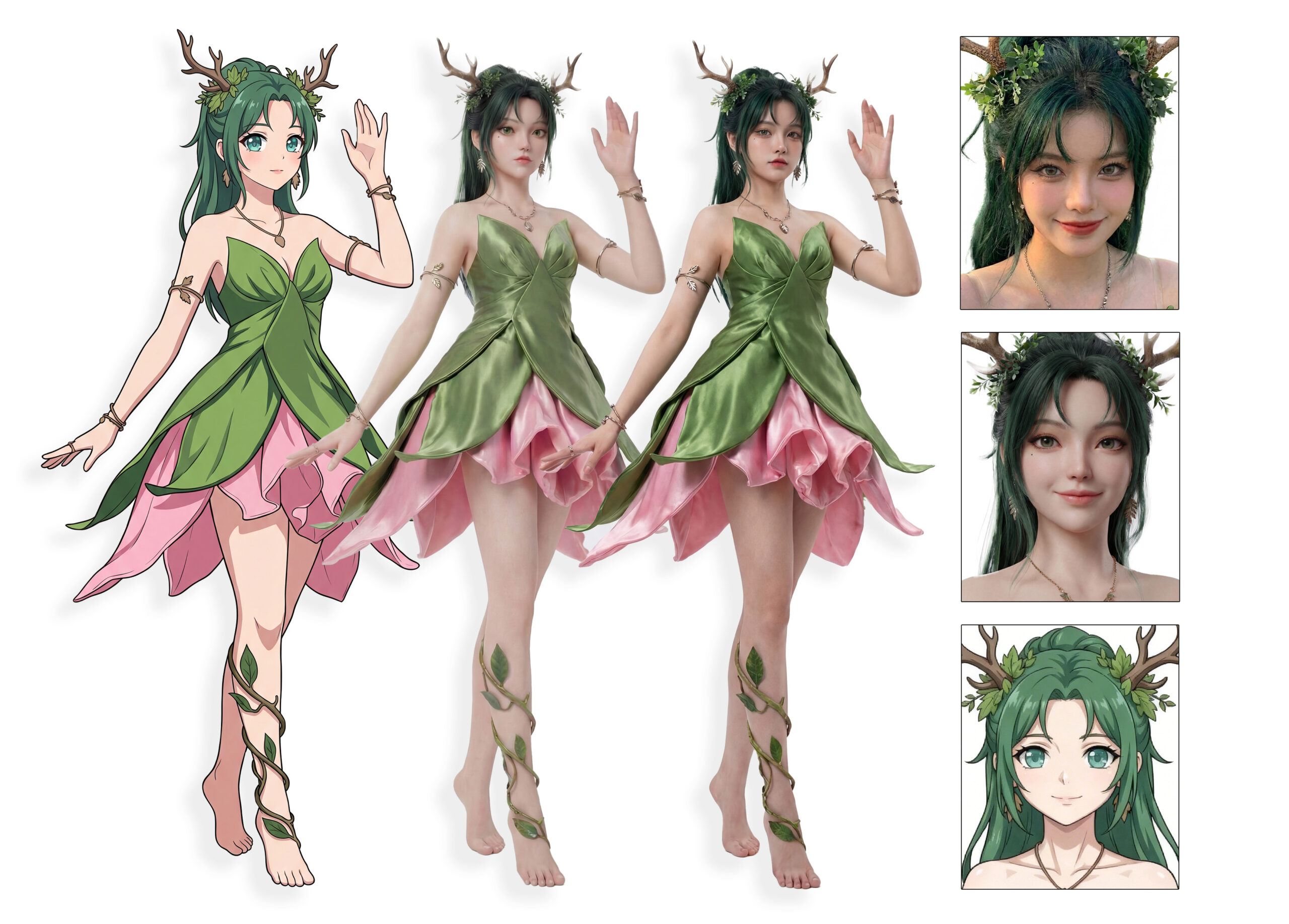 参考网红风格账号,生成多种风格的虚拟主播视频,涵盖真人、建模与动画风格。