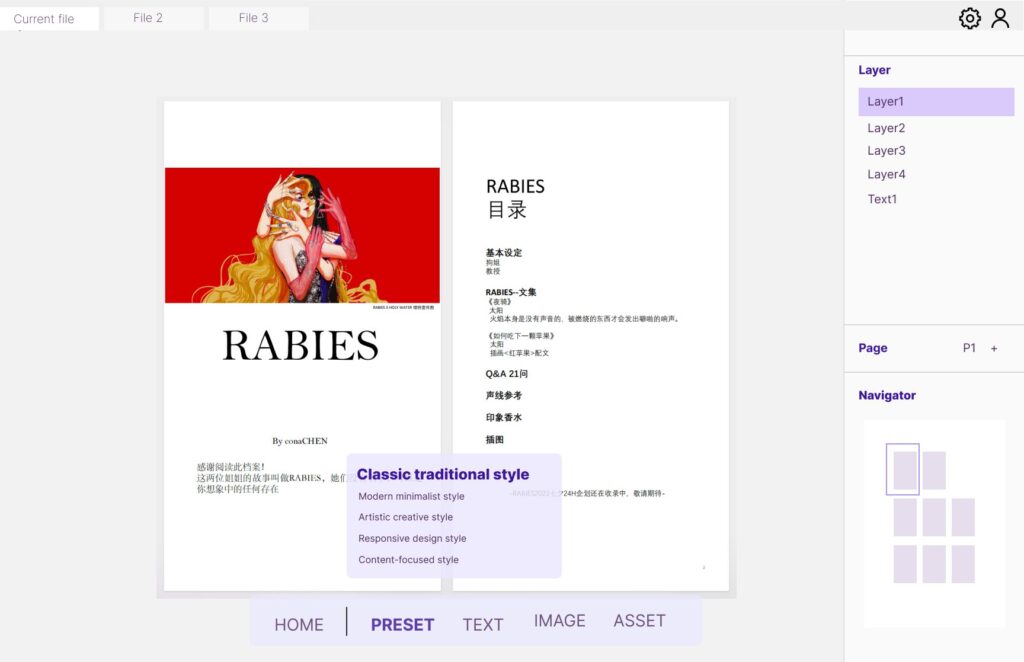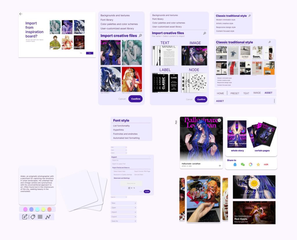 网页端负责创作:包含灵感提取、故事结构编辑、标签管理与版式排布等功能