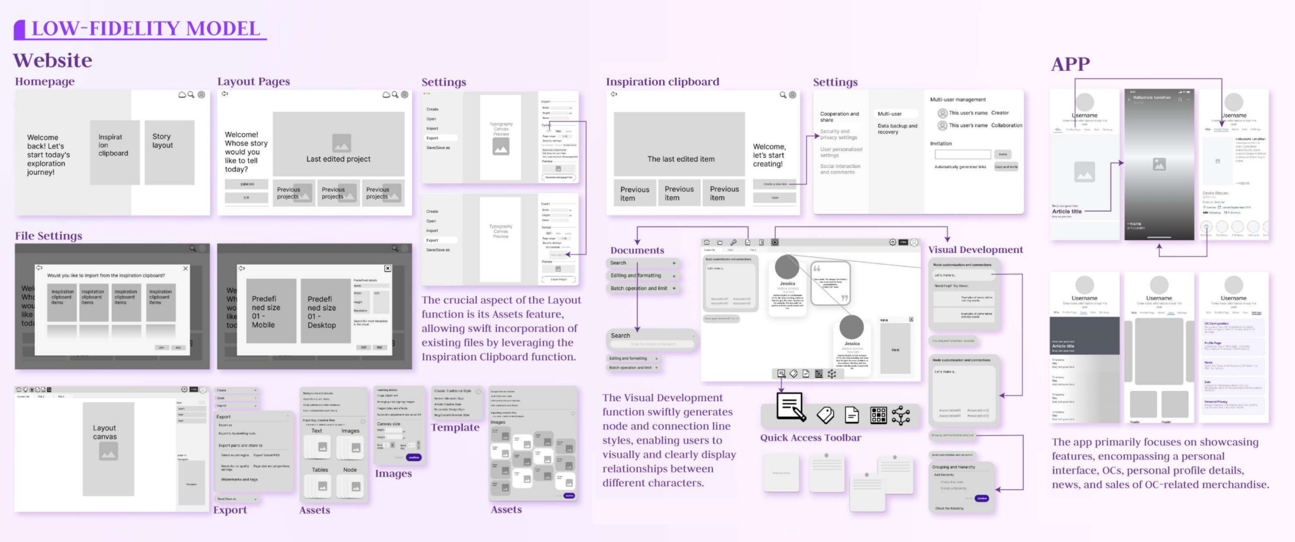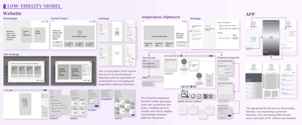 本项目希望解决的不是“灵感”,而是如何把已经存在的内容整理好、呈现好。平台将零散的角色设定、剧情和世界观拆解为可管理的模块,支持逐步扩写和非线性编辑,使创作者可以从任意部分入手,逐步完善故事整体,而不必一次性完成所有内容。